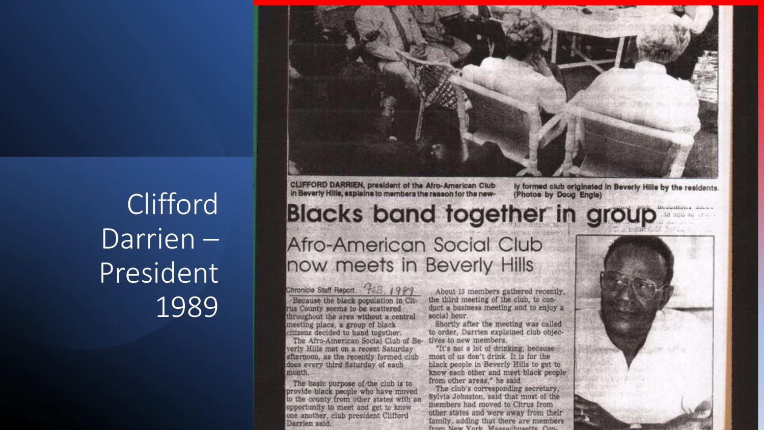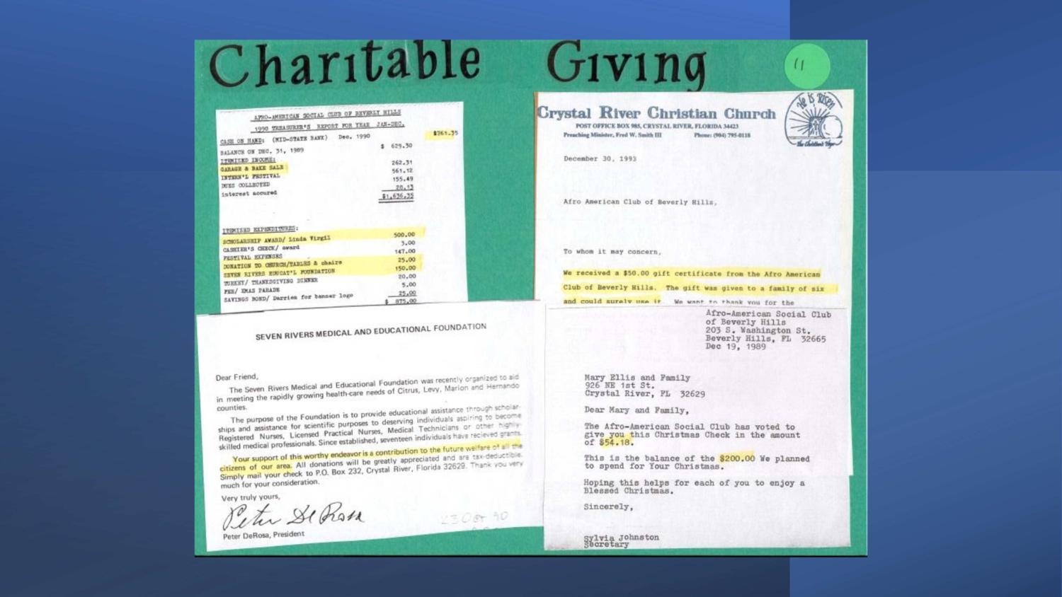 The Afro-American Club of Citrus County is a A 501(c)(3) not-for-profit organization founded in 1989 with 16 members. The club awards over $12,000 in scholarships to graduation high school seniors each year. Scholarships of $500 to $1,000 are also awarded to current college students and adults pursuing a degree who demonstrate financial need each year.